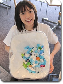 ペットボトルのキャップをたくさん集めると 世界の子供たちにワクチンが贈られます。 |