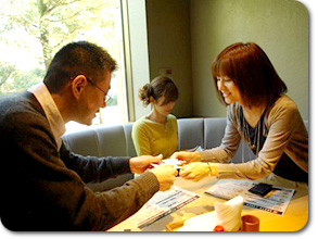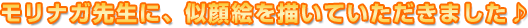 私、似顔絵を描いていただくのは初めて! どんな顔をしていればいいのかと思っていたら、 リラックスしてお話をしているうちに、 先生は表情やしぐさの特徴をつかんで、 サラサラとペンを走らせていました。 |