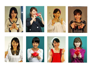 静止画像もFLASH画像も! FLASHでは、携帯を開くたびに、アナウンサーがチョコを手渡しちゃいます。 と思いきや!?予想外の動きをするアナウンサーも… |