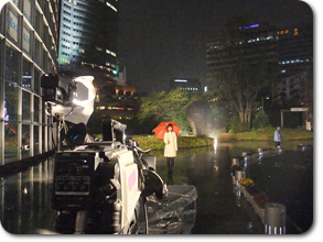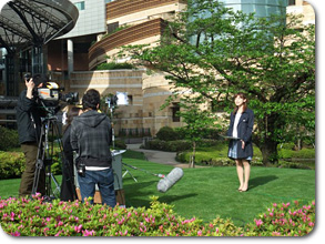 外に出て毛利庭園でオンエアに臨みと、社内と外を行ったり来たり目まぐるしく動いています。