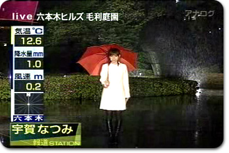 自然に人は勝てません(泣)。強い風が吹いていたので、風に揺れる木にカメラがズームしていたところ、お天気コーナーに入ったとたんピタリと収まる、などということはしょっちゅう。やはり、コロコロと表情を変える空と付き合うお天気は難しいですね。自然と人の戦い、そんな気持ちでいつも臨んでます。 |