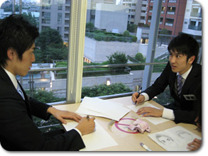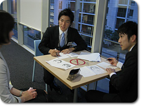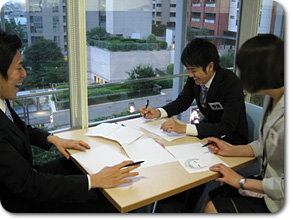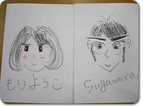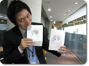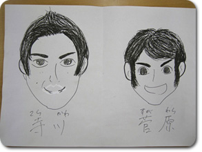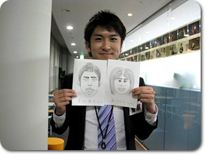 現在研修期間中の3人とはあまりじっくり話をする機会がなかったので、 お互いの「似顔絵」を描いてもらったら、そこから3人の関係やそれぞれの個性が見えてくるのでは!? そこで、研修後の3人からちょっと時間をもらい、描いてもらいました^0^ |