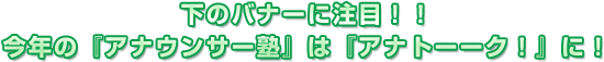 私もちょうどこの時期、大学院に進学するべきか就職するべきか、 自分には何が向いているのか? もちろん! テレビ朝日ではアナウンサーの仕事に興味を持つ学生の皆さんのために ズバリ、「アナウンサー塾」改め「アナトーーク!」(!!) |
