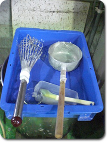 ![]() お玉、泡立て器…お料理を作る道具で作っていました! |
