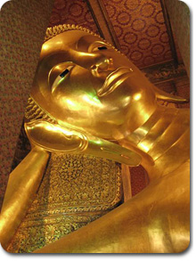 ワット・ポーの体長46mの巨大な涅槃仏。ま、まぶしい! |