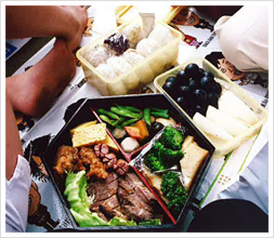 秋の味覚・・・は栗ごはんをおにぎりにしたり、果物で巨峰や梨を持たせたり。