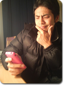 本人はスマートフォンを使いこなしているつもり。心なしか画像も粗い。 |
