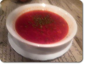 早速、ロシア名物ボルシチを食べたらしい。 |