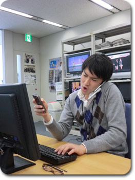 “文明の利器”を同時に3つも使いこなす離れ業!!・・・。 |