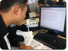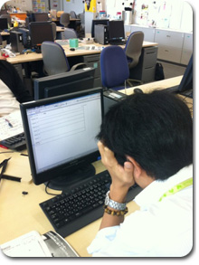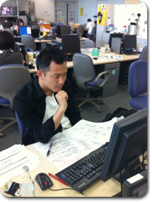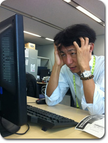 ![]() たくさんの資料を広げて。精悍な顔つきです。 |