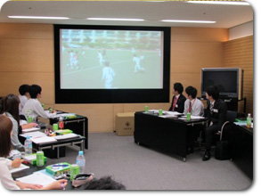 研修ではまず、現場に出て、自分たちが今までにやってきた仕事のDVDを持ってきて、講師の方々に見ていただき、講評をいただきました。