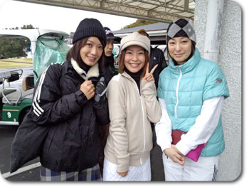 ゴルフ場に到着するも、女性3人はなかなか重い腰があがりません。