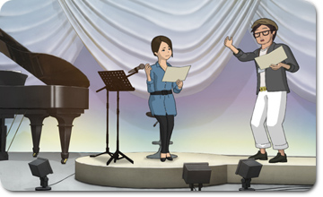 ナレーション現場でディレクターに無理難題を押し付けられるアナウンサー役で下平さんが登場! いかがですか?面白そうじゃないですか?? 加藤真輝子先輩にその魅力を聞いてみました。 |