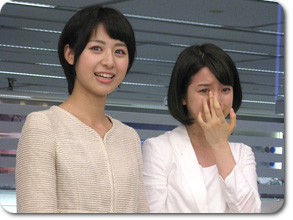 部長、そして、研修をずっと担当してきた、 スタジオでは懸命に頑張った、フレッシュな二人に、 さぁ、アナウンサーとしての第一歩を踏み出す二人に一言聞きましょう!