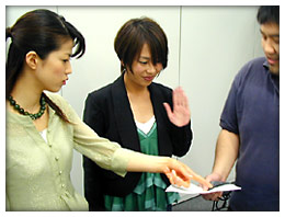 こんなことを、このタイミングで言って下さいね、と簡単に打ち合わせが行われます。(武内アナの手に注目!小さく練習しています(笑)) |