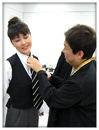 ようやくモーニング姿になると、私は・・・どうも男の人みたいなんですよね。悲しいぐらいに肩幅がピッタリで。角澤さんには「お前は宝塚の花組だな。」と言われてしまいました・・・☆