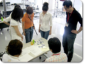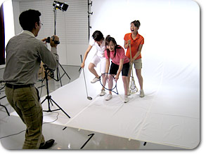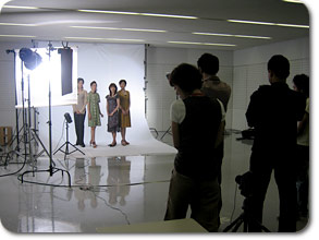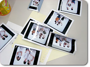 おぉ!ビシッと決まりましたっ それぞれのシーンごとにポラロイドで試し撮りをし、 それをみんなで確認します。 |