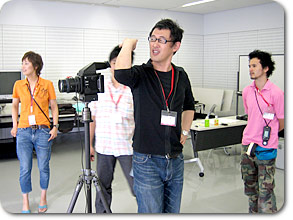 オフもにぎやかなこの現場。 1児のパパとしてホームビデオの腕を上げている小木さんが、ムービー撮影。(仕事としての撮影です、念のため) で、「おっ、生足だね!」とのオヤジ的発言に… |