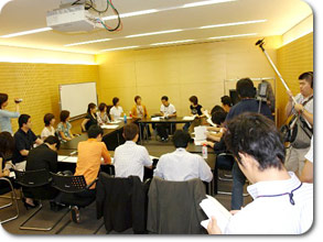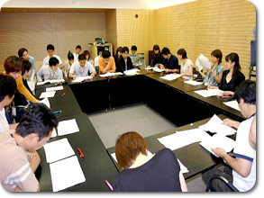 ![]() 台本読みに夢中でみんな下を向いています |