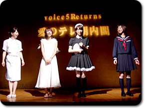 その反応に答えるように、アドリブに次ぐアドリブで 上演時間は2時間半! お付き合いくださったお客様には本当に感謝しています。 2年越しでようやく実現したvoice5リターンズ。 1800人を超えるお客様に来ていただき、沢山の笑いと、涙と、声援を頂きました。 そしてロビーに収まりきらないくらいのお花も! |
