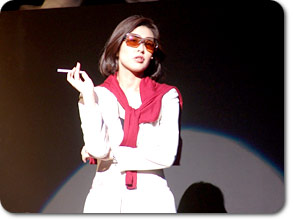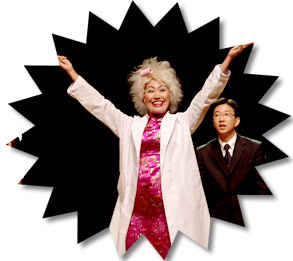 中国から来たナゾの博士、シモヒラ博士。 お客さんの反応が毎回違うのが、舞台の面白さ。 かなりキワドイ内輪話もありました(笑) |