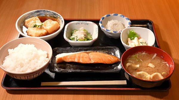 仕事のあとの朝メシは、定食屋さんの焼き魚定食!