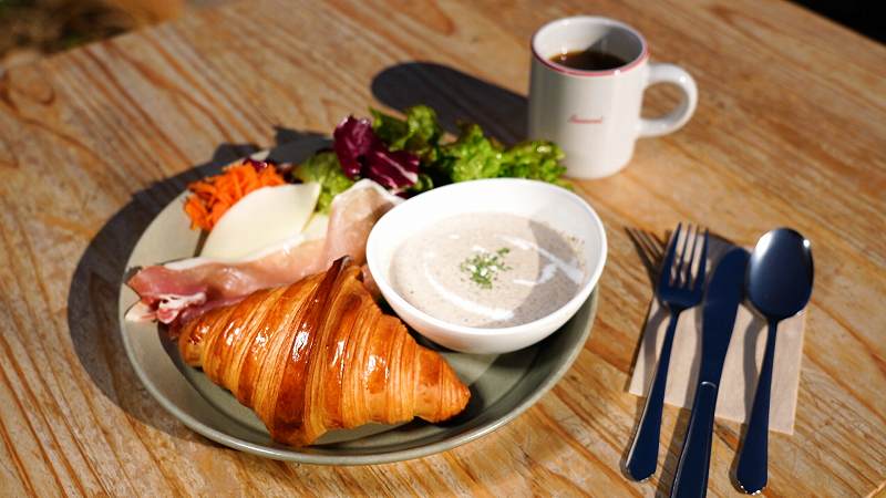 土日祝日限定で食べられるモーニングプレートの主役は、大きなクロワッサン!フランスと日本の小麦を使い、発酵時間や生地の層数にまでこだわったクロワッサンは、ザクザク食感と濃厚なバターの香りで本場フランスの味が堪能できる絶品パン!