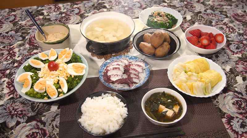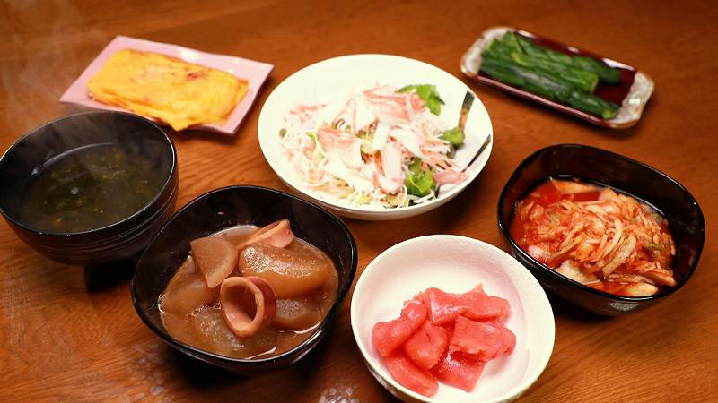 仕事のあとの朝メシは、孫たちが作ったおかずと自家製味噌のお味噌汁!