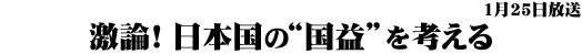 | 20世紀の末からのこの10年余りの間に、戦後の冷戦時代では予想もできなかった出来事が、内外とわず数々起こりました。そして、そのような出来事は、常に私達日本と日本人に「国益をどう考えるか?」ということを突きつけてきたように思われます。戦前の教訓からか日本と日本人にとって、あからさまに「国益」を考えることは「タブー」とされてきました。 そして、「国益」のための「戦略」を持たない、考えないことが結果的に「国益」にかなうことになってきたという矛盾した歴史があります。 しかし、時代は明らかに変わりつつあります。いまアメリカは、アフガニスタンにおける戦争において、ある一定の成果を納め、ブッシュ政権になってから露骨になったユニラテラリズムへの動きは、より一層加速しつつあります。京都議定書、ABM条約、そしてCTBTと、アメリカは「国益にかなわない」という理由で諸条約を反故にし、孤立主義の方向に向かっています。憲法前文で謳う国連中心主義と同盟国であるアメリカとの関係との間で矛盾が増幅してゆく状況で、私達は自国の「国益」に基づいた選択を迫られる日も近づいているのかもしれません。また、国際間の経済依存度が増すばかりの今日、世界第2の経済大国としての日本の一挙手一投足は、世界経済に大きな影響を与えることになります。万が一にも日本が「国益」を楯に対外経済政策に強硬な立場をとれば、また、アメリカのユニラテラリズムが実体経済の面にも反映されてくるとすれば、世界経済が減速方向に向かおうとしている今、世界のブロック化や保護主義化につながらないとも限りません。 それはまさに、20世紀前半の世界恐慌から第二次世界大戦への道です。自衛隊はどうするのか?PKFは?東アジア自由貿易圏構想は?セーフガードは?景気回復は?財政再建は?年金制度は?構造改革は?…どれをとっても「国益」を無視しては決断できないこれらの問題。 それを考えることはとりもなおさず、移り変わる時代の中でこれからこの国=「国家」がどうあるべきかということを考えることでしょう。 経済面でも軍事の面でも国際関係に依存しなければいきてゆくことができないことは自明であるこの国は、これからの新たな時代を「国益」を守るために、どのような「戦略」を持つべきなのでしょうか? そこで、今回の「朝まで生テレビ!」は、日本の「国益」について真正面から議論してみたいともいます。 現役官僚の方々にもご参加いただき、直面する内外の様々な問題を俎上にのせつつ、そこから垣間見られる「国益」とは何なのか?「国益」に基づいた選択を行うとすればどうなるのか?という点から徹底的に討論してみたいと思います。 |