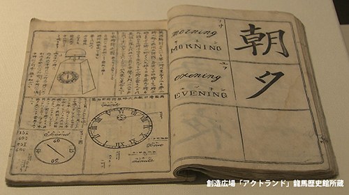 英語に不慣れな日本人のために、分かりやすくカタカナで発音表記されたこの辞典。「朝」が「モーネン」、「夕」が「エブネン」と表記されるなど、興味深い内容になっています。外国人の日常生活を理解するため、欧米での時間の刻み方を紹介するなど、細部にまで工夫が施されています。将来、英語でのコミュニケーションが主流になることを見据えた海援隊の庶民へ向けたメッセージが込められています。