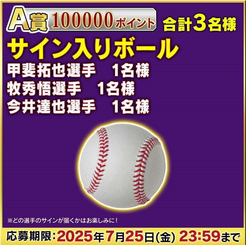 サイン入りボール 3名様 ※甲斐拓也選手、牧秀悟選手、今井達也選手 各1名様