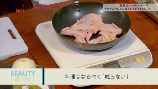 ポイント:ゆっくり焼くことで、トリ肉の油だけで焦げ付かせずに焼くことができます! 料理は“できるだけ触らない”のがおいしく仕上げるコツ。お鍋を不必要にいじると、水が出てしまったり、栄養素が壊れる原因となってしまいます。また、"できるだけ切らない"のもポイント。「小さく切れば切るほどまずくなると思ってください!」と堀さん。お肉も塊のまま焼き、食べる時に切ったほうが栄養の損失も少なく、おいしさを逃さないのだそう。