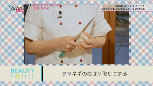 ポイント:タマネギの芯はV取りにすると、切る時に崩れにくい!