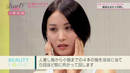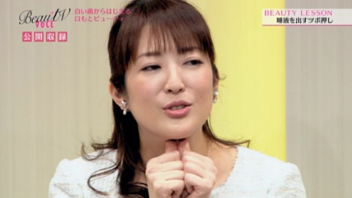 そんな大切な唾液を出すツボ押し法を教えていただきました。まずは、両手を出してください。人差し指から小指までの4本の指を、ほほに当てます。耳の前の頬骨の下あたり。そこから前へ向かって5~10回ほどぐるぐる。耳下腺のマッサージです。