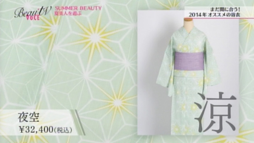 今年のおすすめという浴衣は、清涼感のあるライムグリーンの「夜空」。定番として人気があるのは、きれいな灰桜の「花桔梗」。最近は、着物の柄を起こしたような古典柄も人気なのだとか。うちわ柄が涼しげで大人っぽい「宵山そぞろ」の生地は、異なる太さの糸で格子状に織られた「綿紅梅」。その上質な透け感のある風合いは、浴衣として一枚で着ても素敵。半襟・おたいこを付けて足袋を履き、夏の着物としても着られるのだそうです。