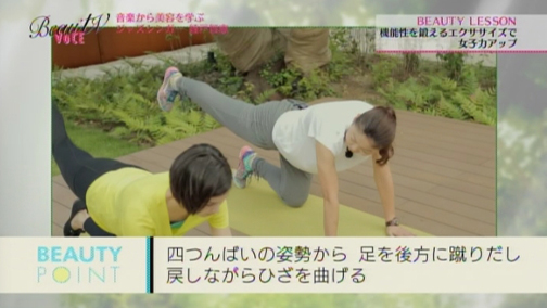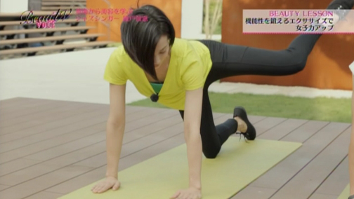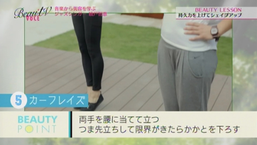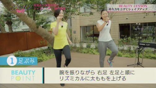 「持久力は…ないです!」というエイミさん。でも、持久力は疲れにくい体を作ってくれる大切なもの。脂肪を燃焼し、筋肉のついた美しい足を作るためにも欠かせないものなんです。持久力をつけることは、シェイプアップの近道と言えそう。気持ちいい音楽にのせてのエクササイズなら、楽しくできそうです!