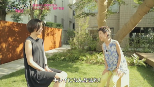 エイミさんが訪れたのは、ウッドデッキや芝生の上で、ヨガ、ピラティスなどができるレッスン場「コートヤードHIROO」。今日はこちらで、気持ちいい風を浴びながら屋外でのビューティレッスンです。