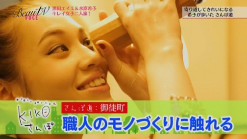 希子さんも、KIKOさんぽで前回訪れた「アキオカ アルチザン」の万華鏡のお店へ、自分でも万華鏡を作りに行ったのだそう。「エイミのMCで面白いと思うのは、本当に見てる人と一緒の気持ちで素朴な質問をすること。それがすごいわかりやすくていいよね!」という希子さんですが、本当にその通り。KIKOさんぽも、本当に自由で自然体な希子さんが魅力だと思います!