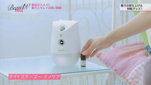 ●ナイトスチーマー ナノケア…ベッド脇にナイトスチーマーを準備すれば、寝室がエステ空間に一変! アロマオイルで心地良く眠れそうです。