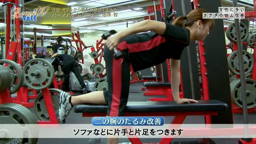 池澤さんによれば、女性の体型の悩みで今特に多いのは、「お尻」と「二の腕」。お尻は、内ももに筋肉がないことや、あまり歩かない生活などが原因です。横に出っぱってきてしまったり、垂れてしまっている女性がとても多いのだとか。二の腕のたるみは、女性の永遠のテーマですよね(笑)。