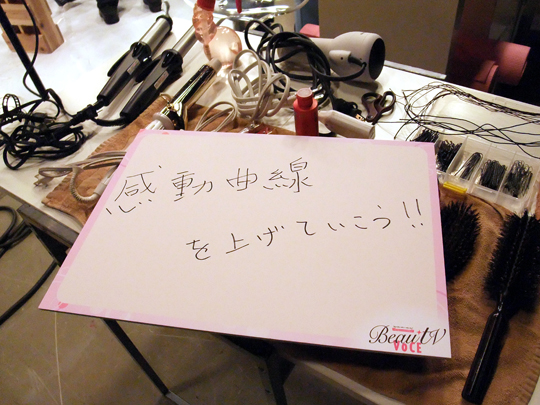 今、宮村さんが一番伝えたい言葉は、「感動曲線を上げていこう!!」。文字そのままに、右肩上がりに書いていただきました。美容院などへ行って、いつもと少し違うステキな自分に感動する、そんな感動を毎回積み重ねていくことで、女性はどんどんキレイになる! いい言葉ですね。これからもBeauTV 〜VOCEは、感動曲線をどんどん上げていくみなさんを応援していきます!