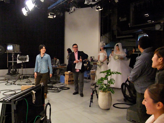 スタジオには、ウェディングドレス姿のモデルも登場! 現場が一気に華やかになりました。