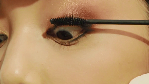 (9)マスカラは、しっかり根元からつけるのがポイント。