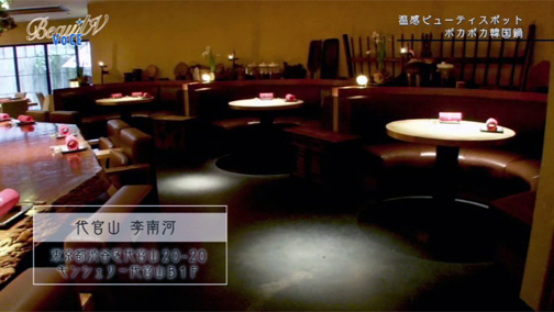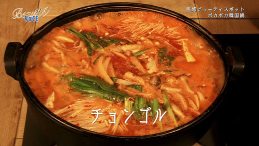 髙橋さんオススメのおしゃれな韓国料理店。寒い季節に大人気のチョンゴルは、おいしくて体もポカポカに! 牛肉と一緒にキノコや豆腐がたっぷり入ったヘルシーな具だくさん鍋「牛肉のチョンゴル」(¥4,500/2〜3人前)は、一度食べたらもうやみつきです。