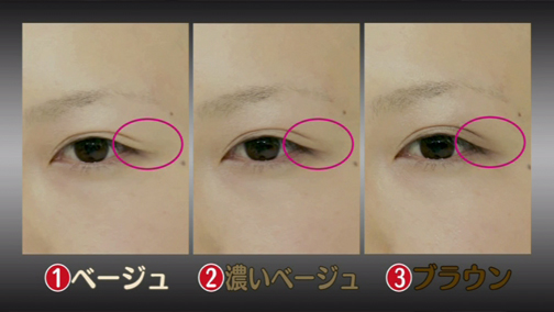 ・さらに、目尻の1/3に濃いブラウンを重ねて3層に。