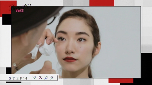最後にマスカラをほんの少しだけ付け、クセつけをします。「全体でもいいけど、目尻だけ付けてもいい。下まつげはマスカラを付けずに仕上げてもいいし」とUDAさん。ちょっとした「クセ」を入れるのがUDA流メイクの決め手です。