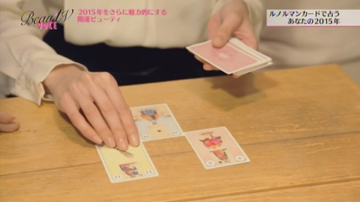 ルノルマンカードが示す、黒田エイミの2015年は…? 引かれたカードは、「花束」と「鞭」でした。