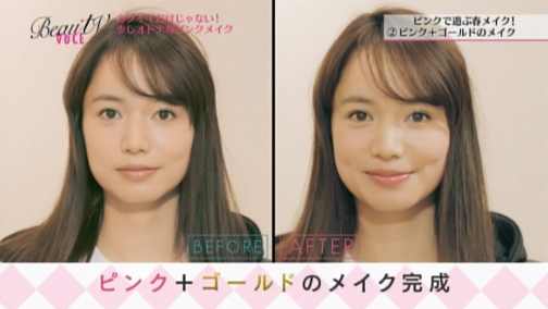 今日は収録後、ライブを見にいく予定があるというエイミさん。夜のおでかけにぴったりの華やかさもあるこのメイク。AYAさんにばっちり仕上げてもらって「わーい、うれしい! いってきます(笑)」と、大満足のうちに幕を閉じました。春メイクはピンクにゴールド、みなさんもぜひ。