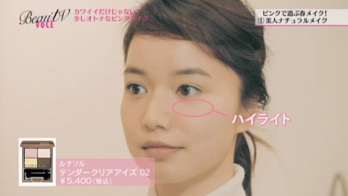 (1)ベースはできた状態からスタート。アイラインとアイシャドウを軽く入れ、ハイライトもプラス。
