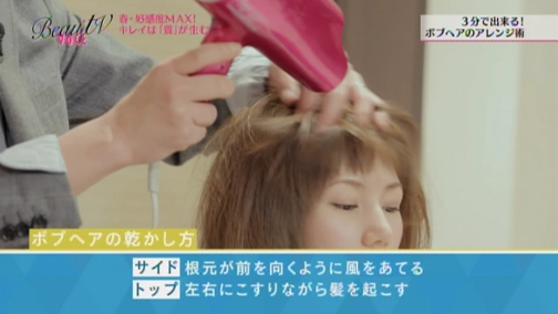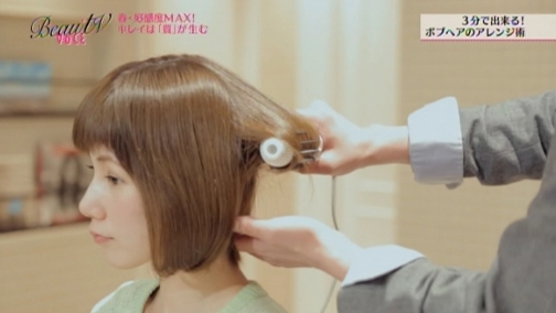 (1)ショートのスタイリングは、事前のドライヤーの乾かし方がとても重要です。毛先がはねやすい、ボリュームが出ないという悩みも、乾かし方ひとつで一気に解消。番組では、乾かしながら髪をいたわるトリートメント効果も期待できる「ヘアードライヤー ナノケア」を使用しました!